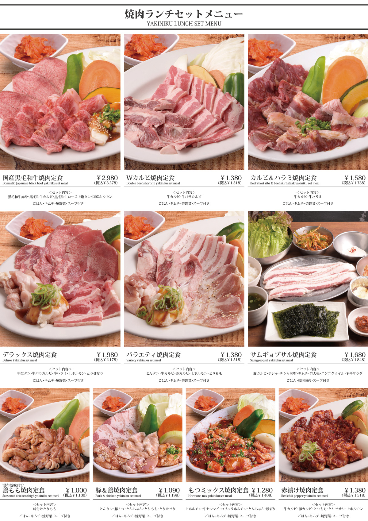 メニュー ランチメニュー ランチメニュー kankokuen 2024年4月28日 Tags: ランチ, 丼, 冷麺, 定食, 焼肉, 麺 Post Navigation Previous 正社員募集(ホール・キッチン)Next 日替わりランチ More Stories グランドメニュー メニュー 韓国料理 野菜キンパ kankokuen 2025年6月30日 Pickup メニュー 韓国料理 韓国タッカルビコース kankokuen 2025年5月1日 Pickup メニュー 韓国料理 韓国プルコギコース kankokuen 2025年5月1日